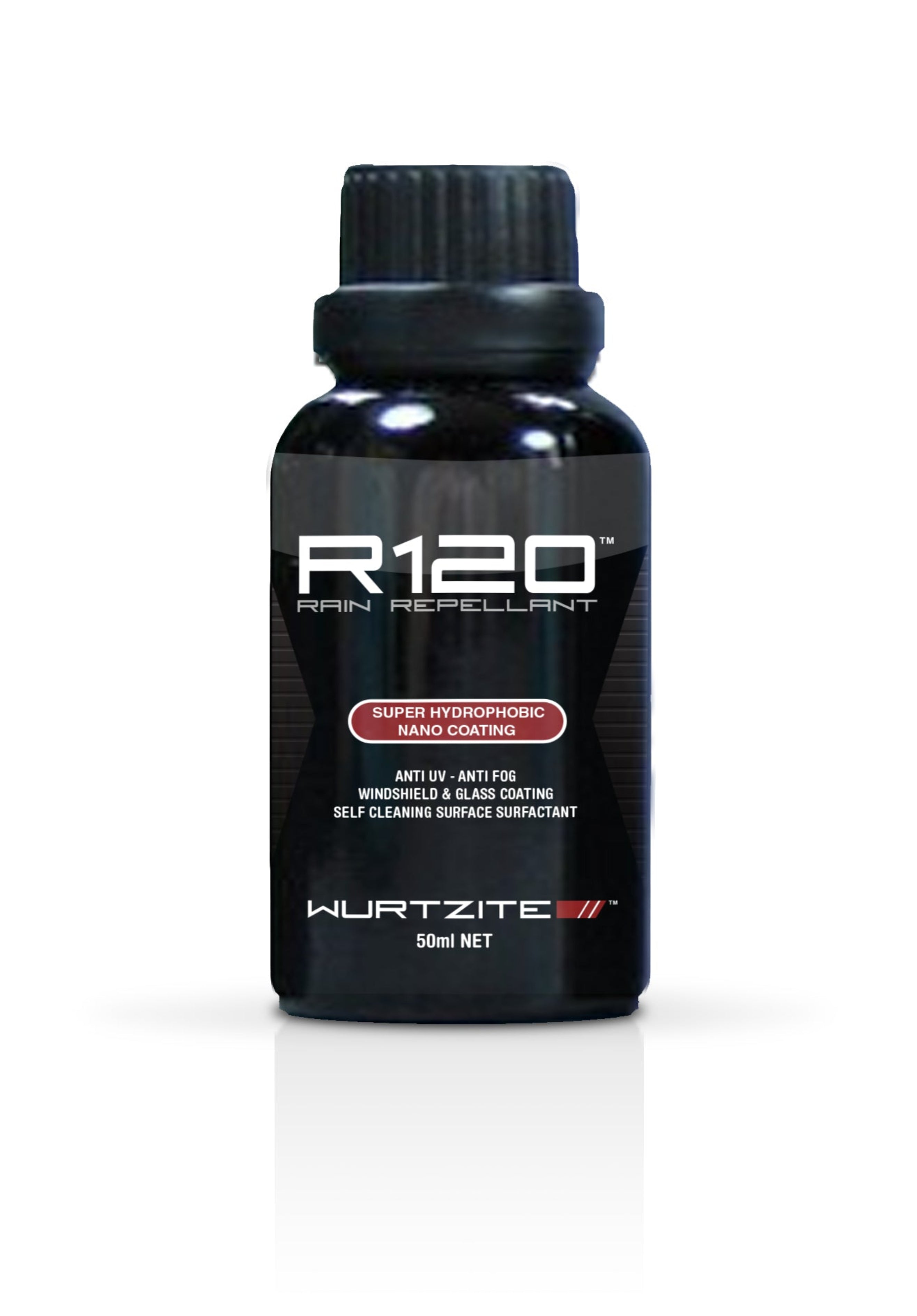 Wurtzite R120 Windshield & glass coating is a unique nano structure with extreme hydrophobic resistant properties. Applied to all types of windshields and glass surfaces R120 eliminates water and dirt residue. Actual bonding adhesion 100%